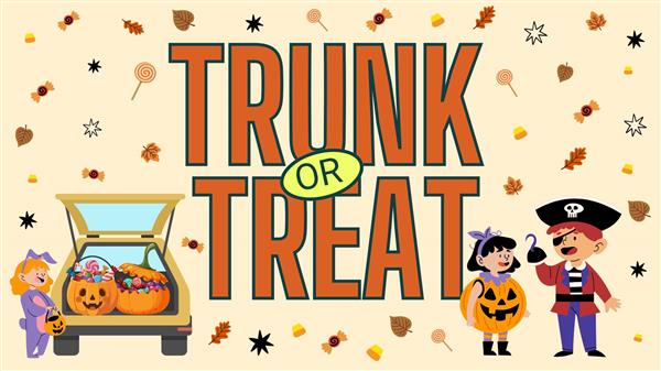 Join us for a fun, family-friendly night at Denton Bible Church! Trunk or Treat will start at 3 PM, and the East Parking Lot will be filled with creatively decorated car trunks, plenty of candy, games, music, and fall fun for all ages! This event is FREE and open to the whole community. Can't wait to see you there!